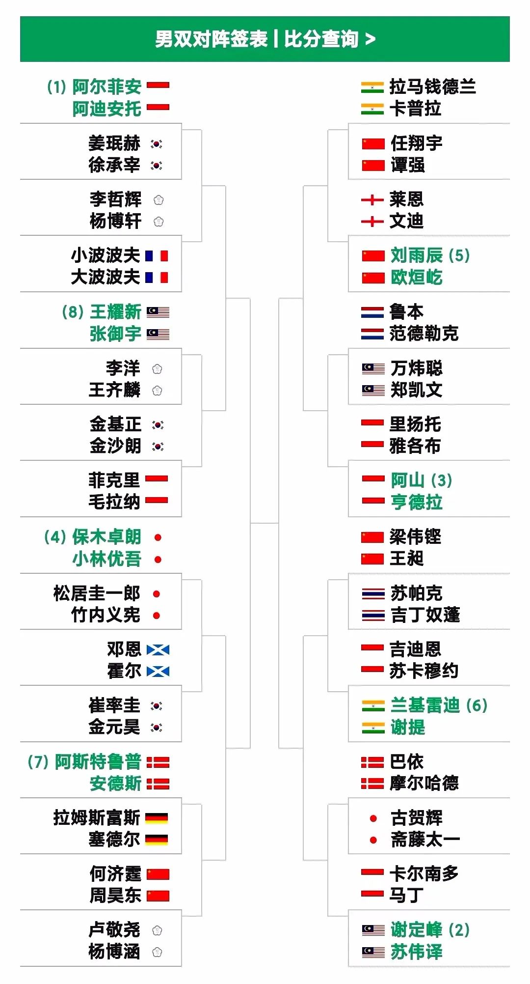 而梁伟铿/王昶所在小组也是水深火热,将迎战小黄人组合同6号种子兰基雷迪/谢提这对印度强势组合的胜出者。
