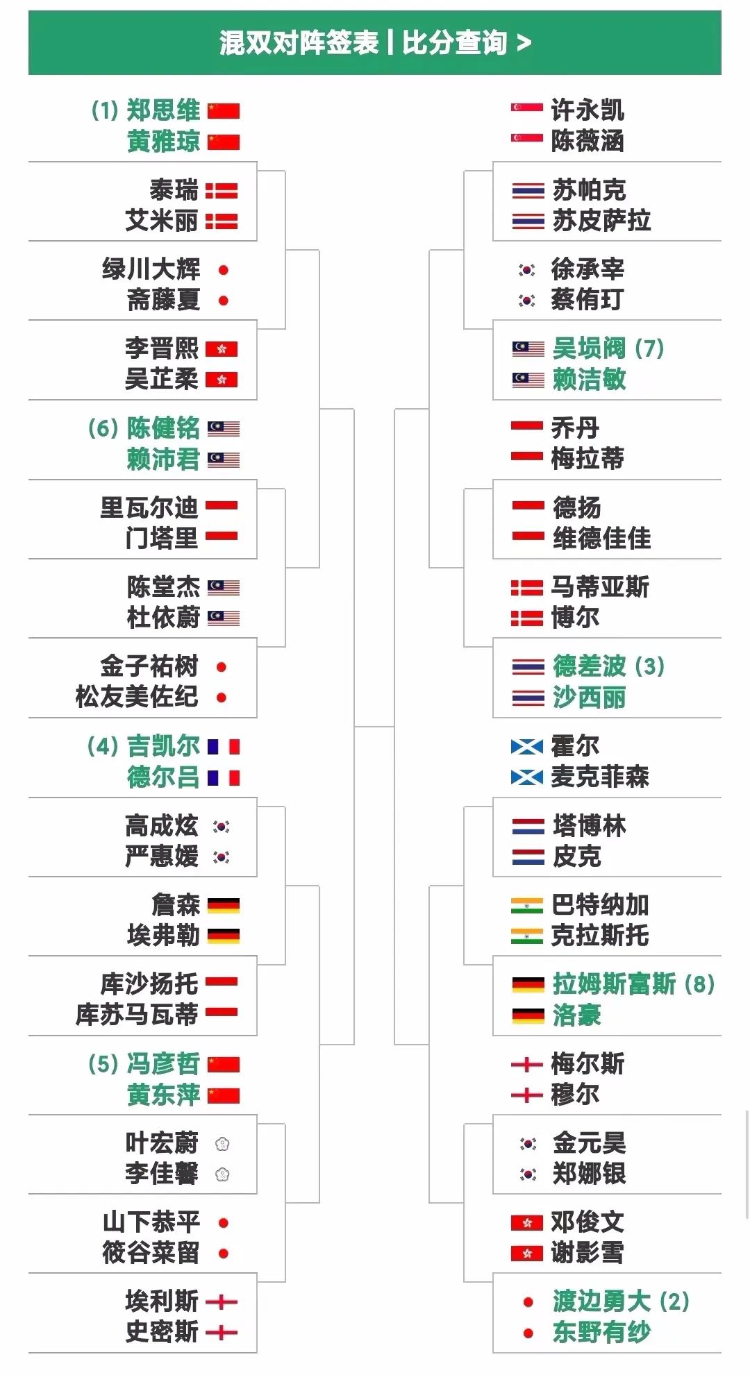 女双方面,国羽出战的两队组合均获得了种子资格,但也被分到了同一半区。
